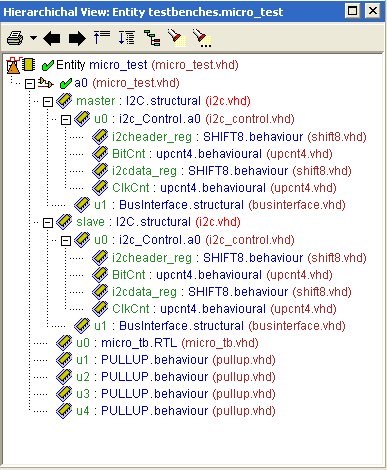 Below is an example of the hierarchy for an I2C model with testbench displayed in the 2 modes.