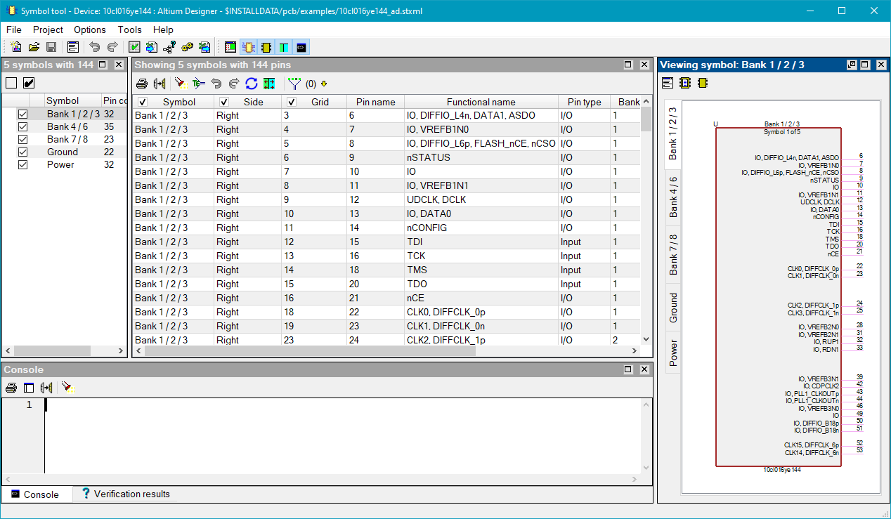 A new utility in IO checker is the Symbol tool. It allows you to easily create symbols for an FPGA and export them to a schematic capture tool. This first version supports Altium Designer, Cadence Allegro, Cadence System Capture and Kicad.